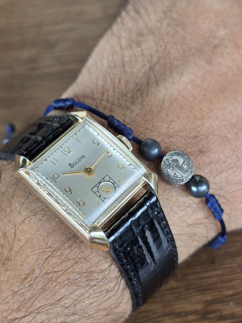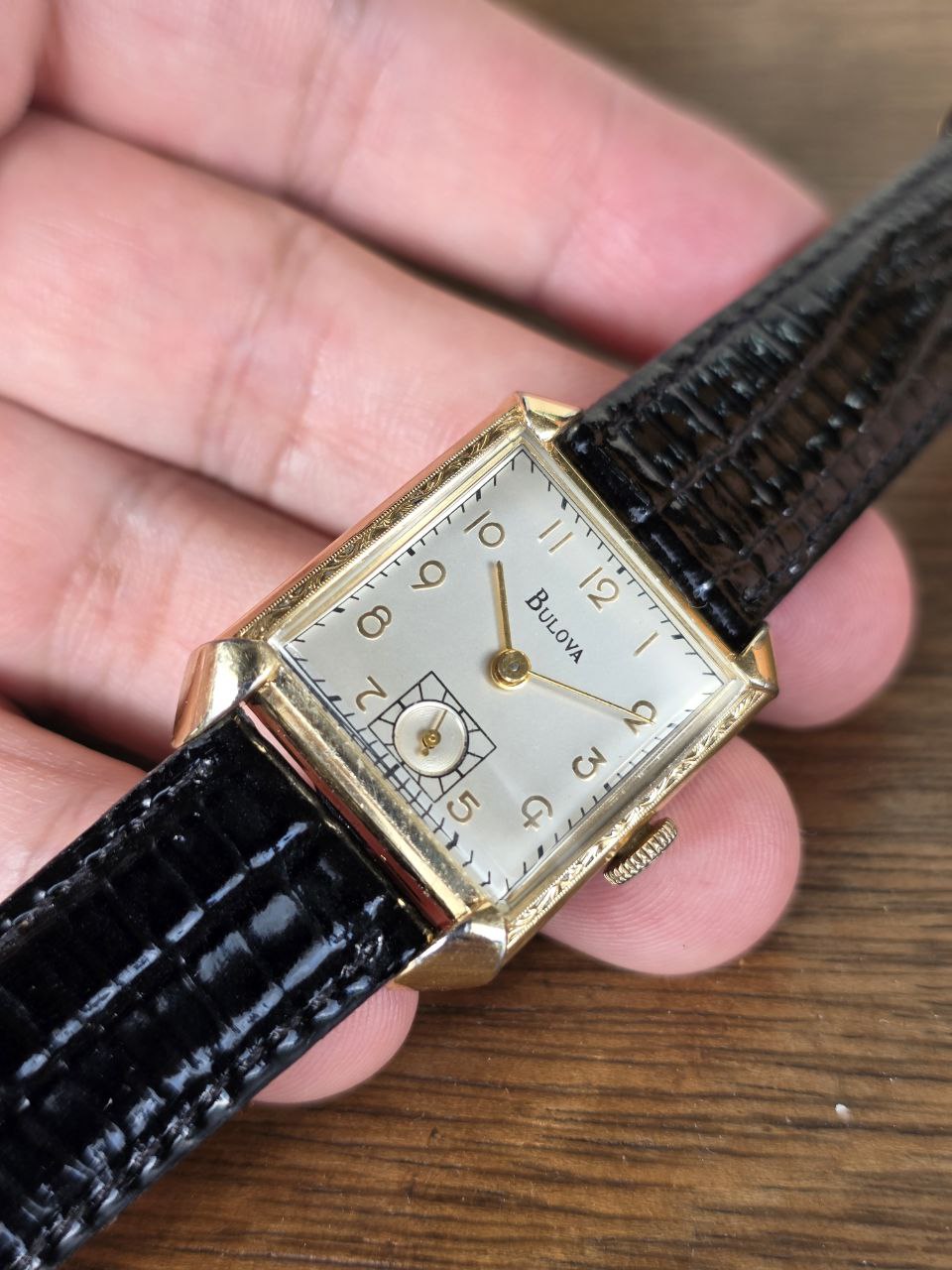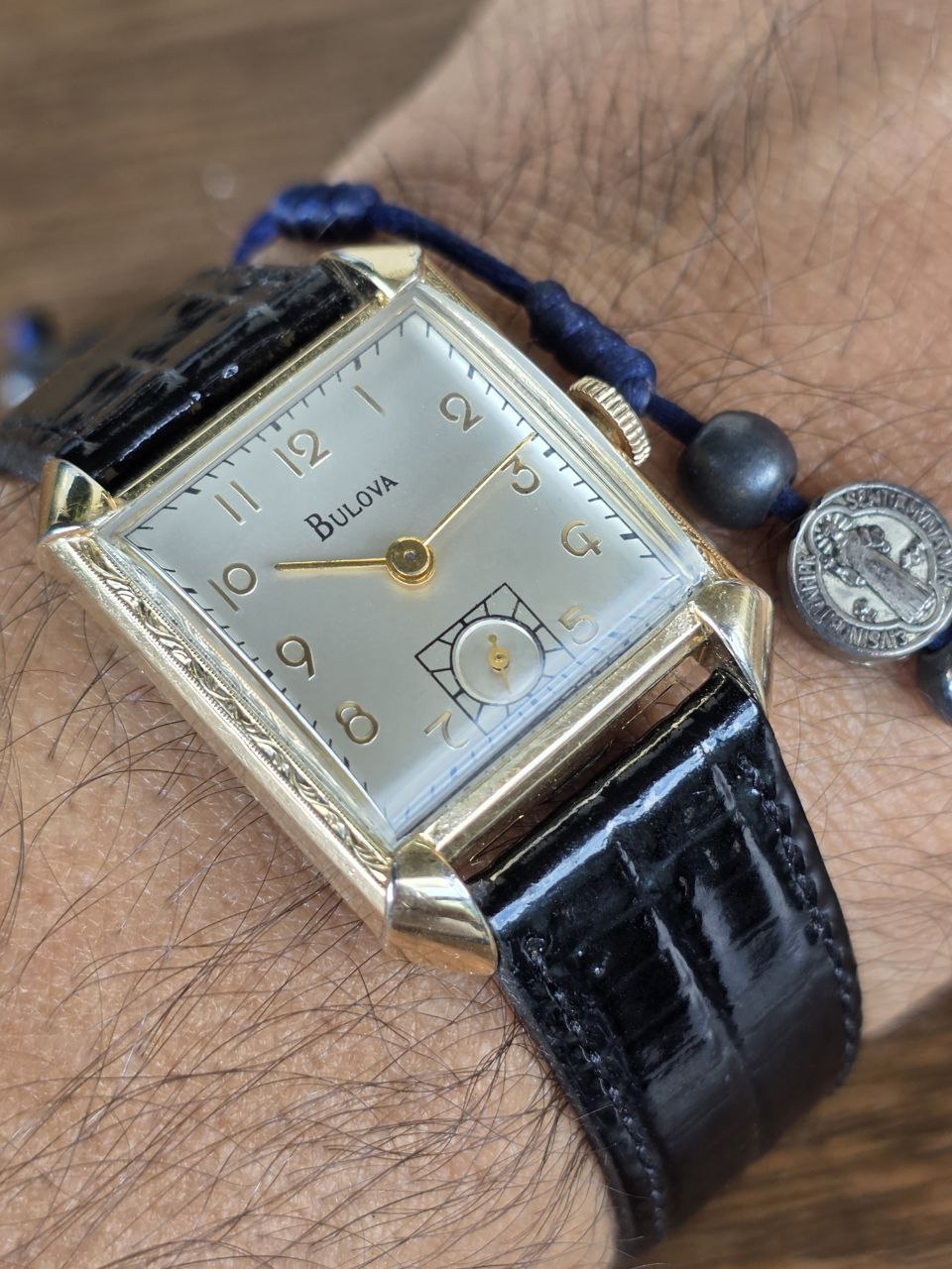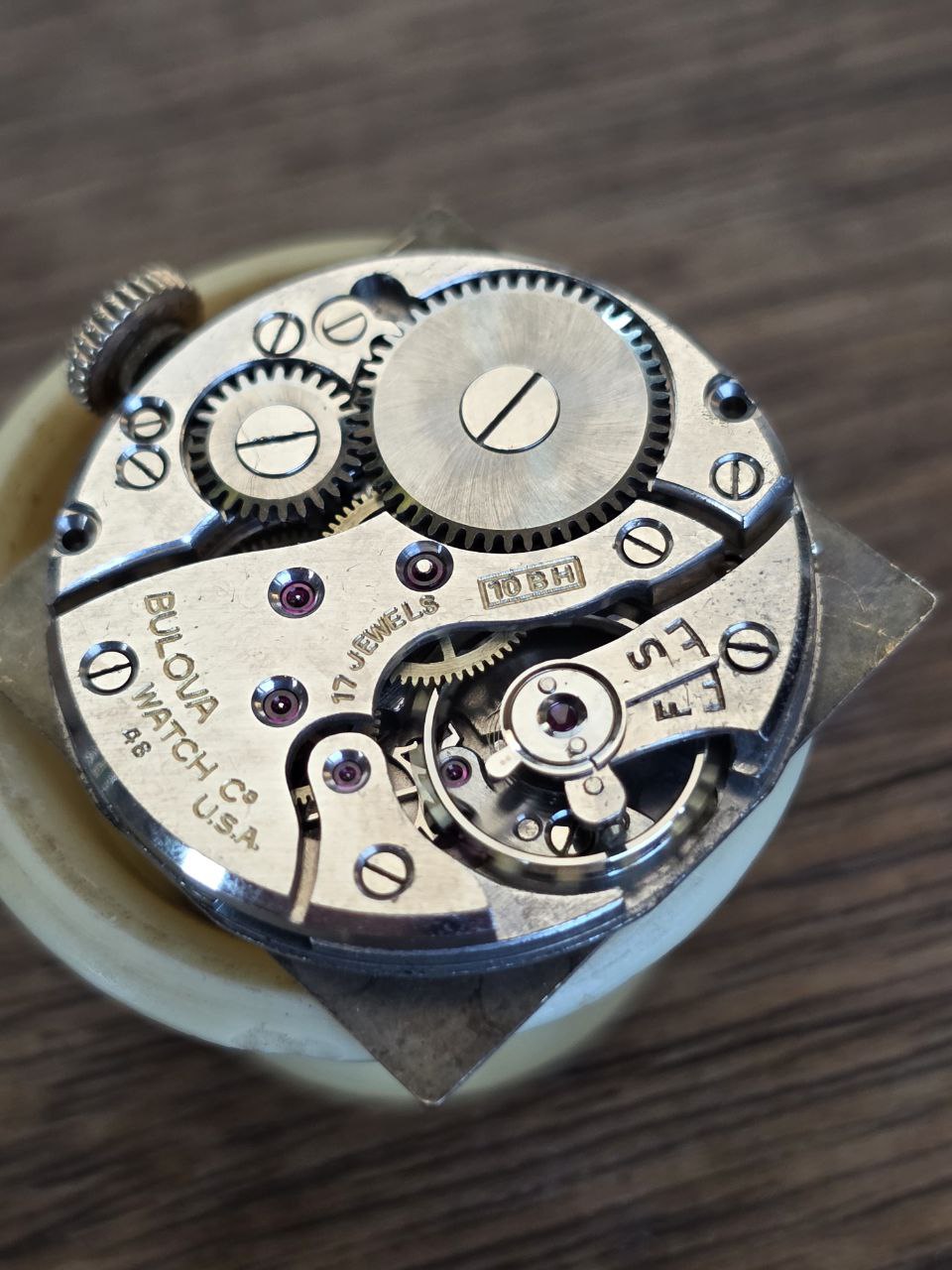 Relógio Bulova original da década de 1940 equipado com o lendário calibre 10BH, movimento mecânico de corda manual fabricado nos Estados Unidos durante a era de ouro da relojoaria americana.