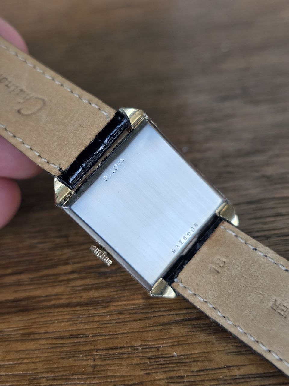O design retangular Art Deco representa fielmente a estética dos anos 30 e 40, período considerado a era de ouro da produção americana de relógios.