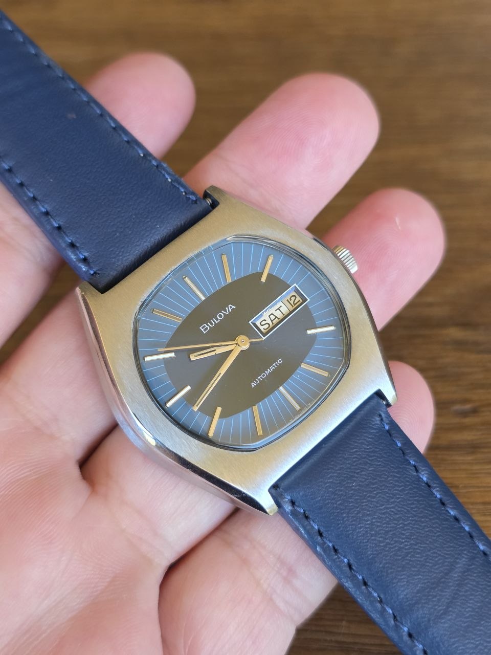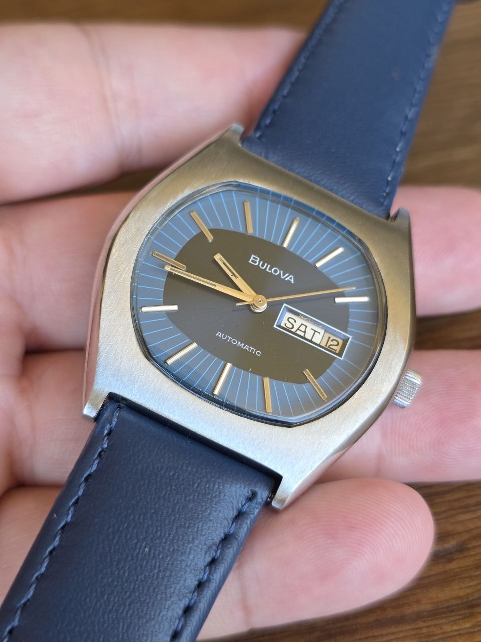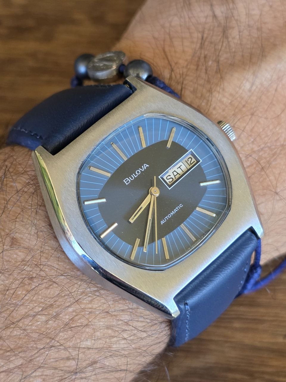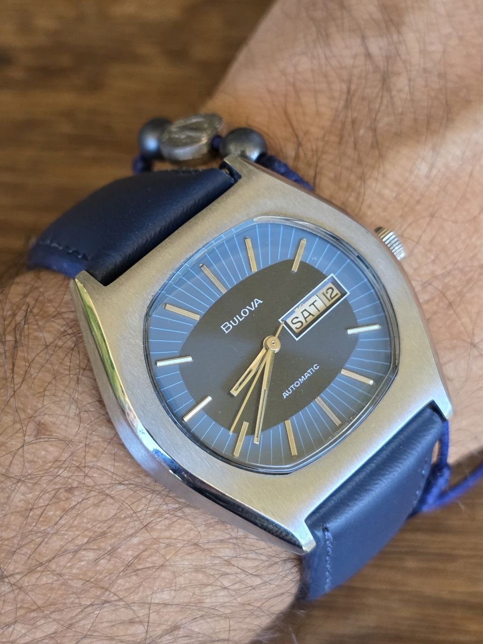 🔥 Bulova Automatic Swiss Anos 70! Prov. 1972/1973 com calibre 11AOACB e mostrador azul surreal 💙⌚️
