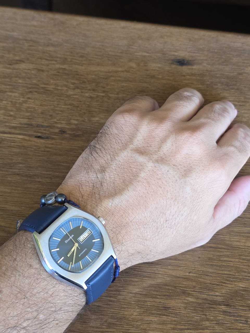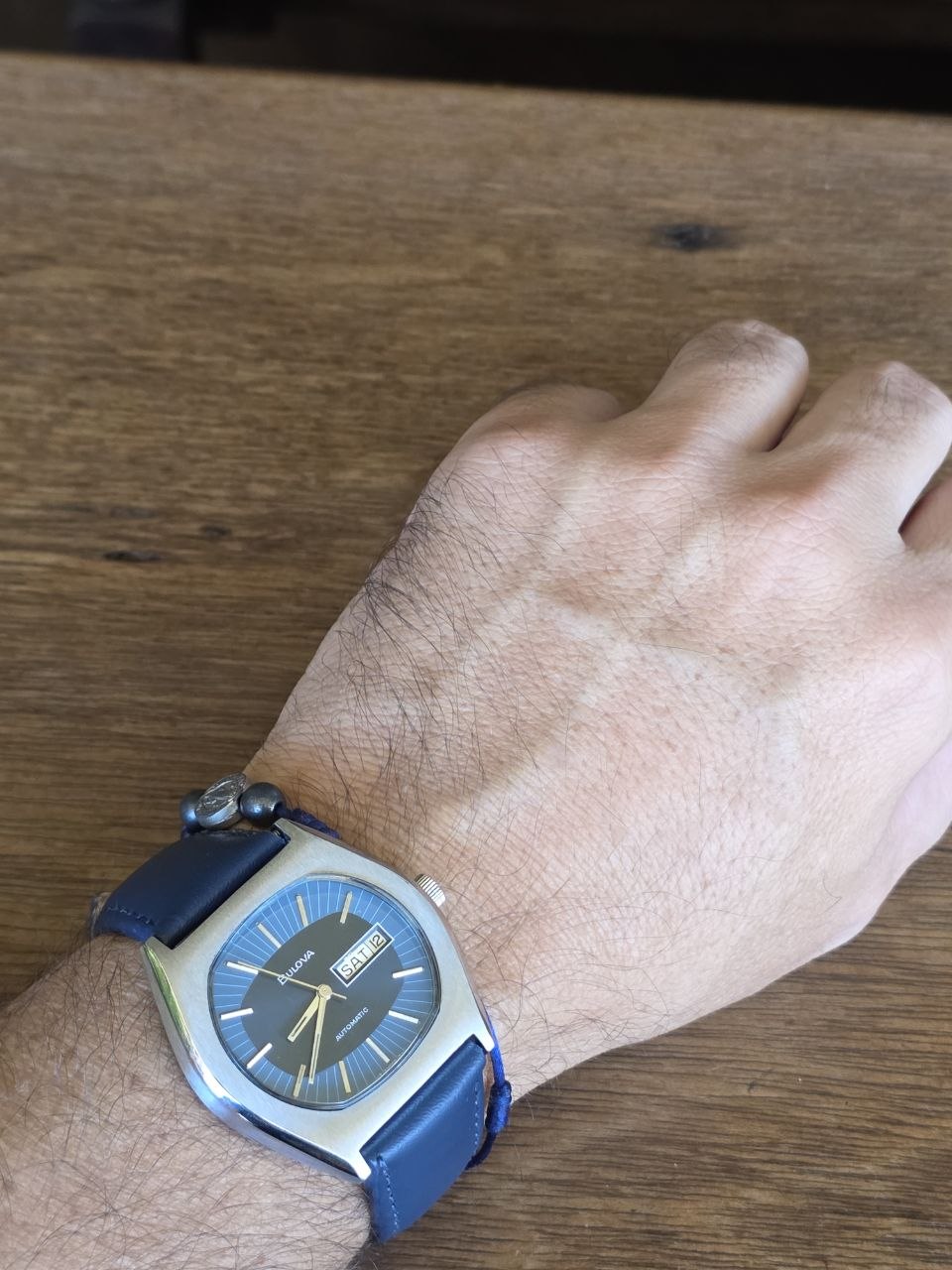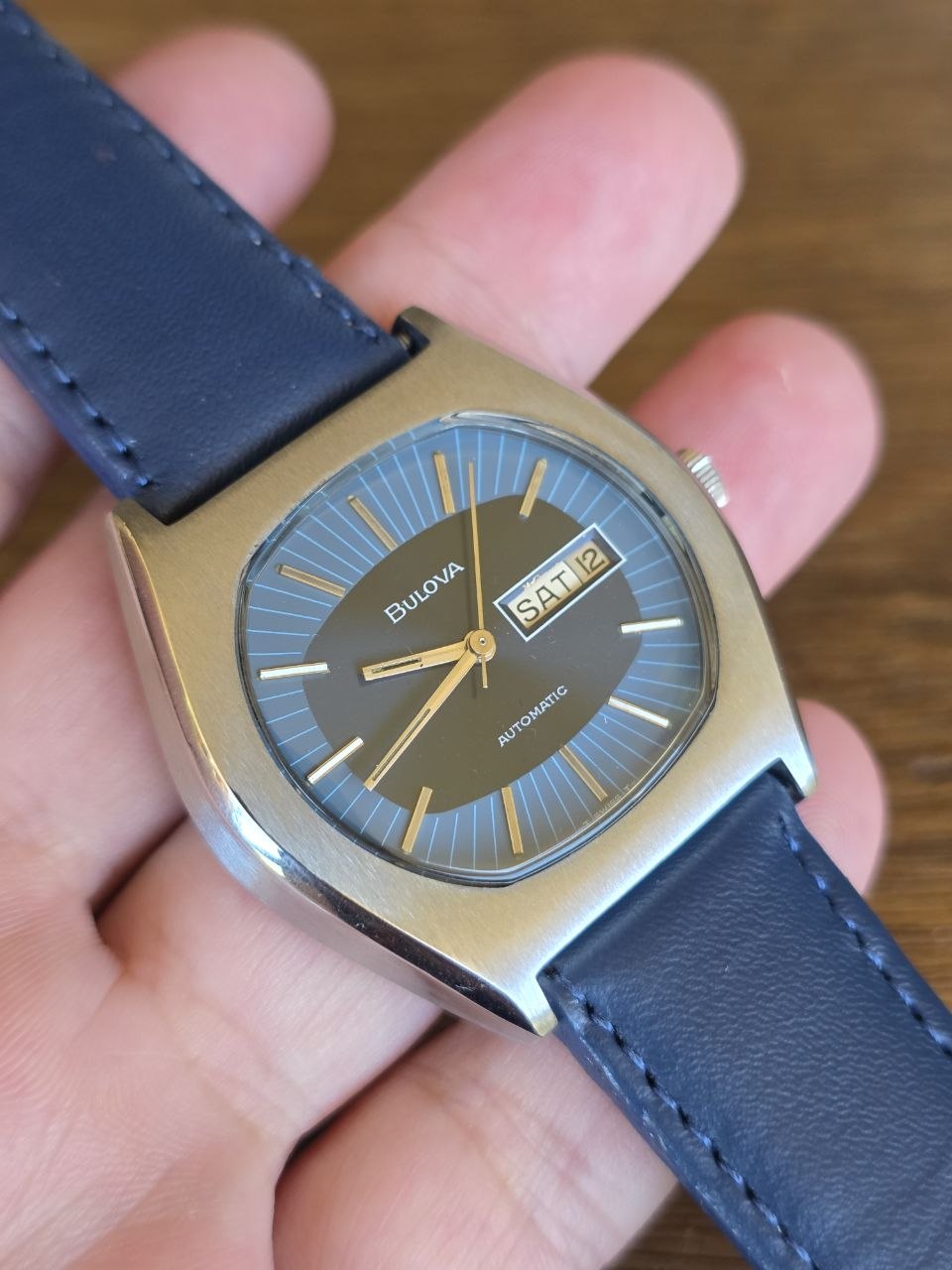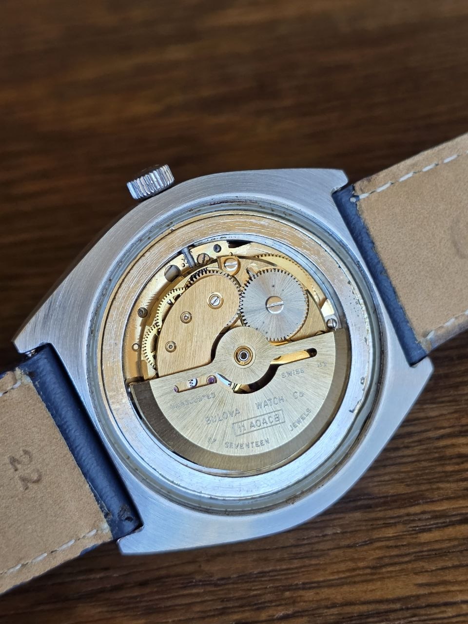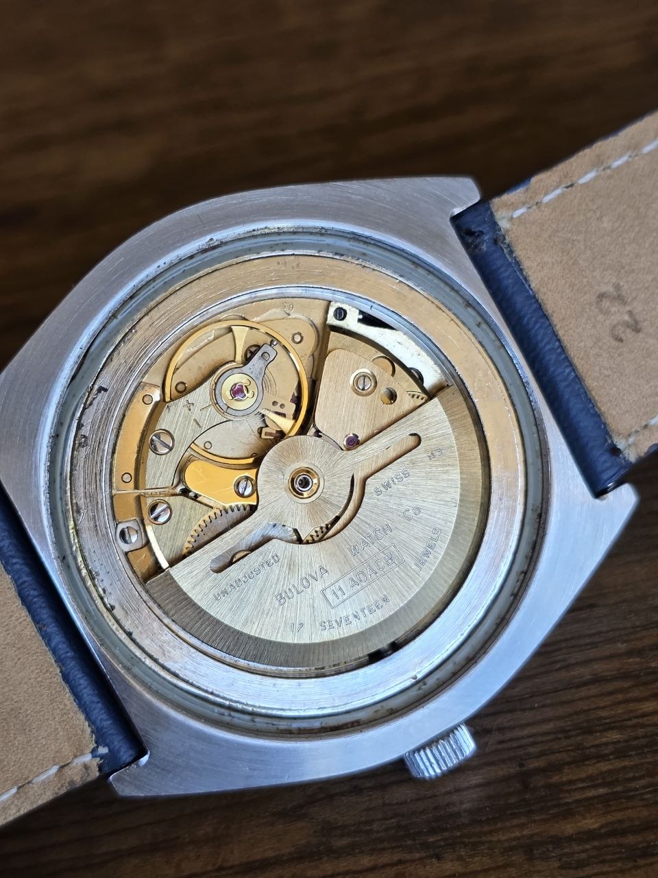 🔥 Bulova Automatic Swiss Anos 70! Prov. 1972/1973 com calibre 11AOACB e mostrador azul surreal 💙⌚️