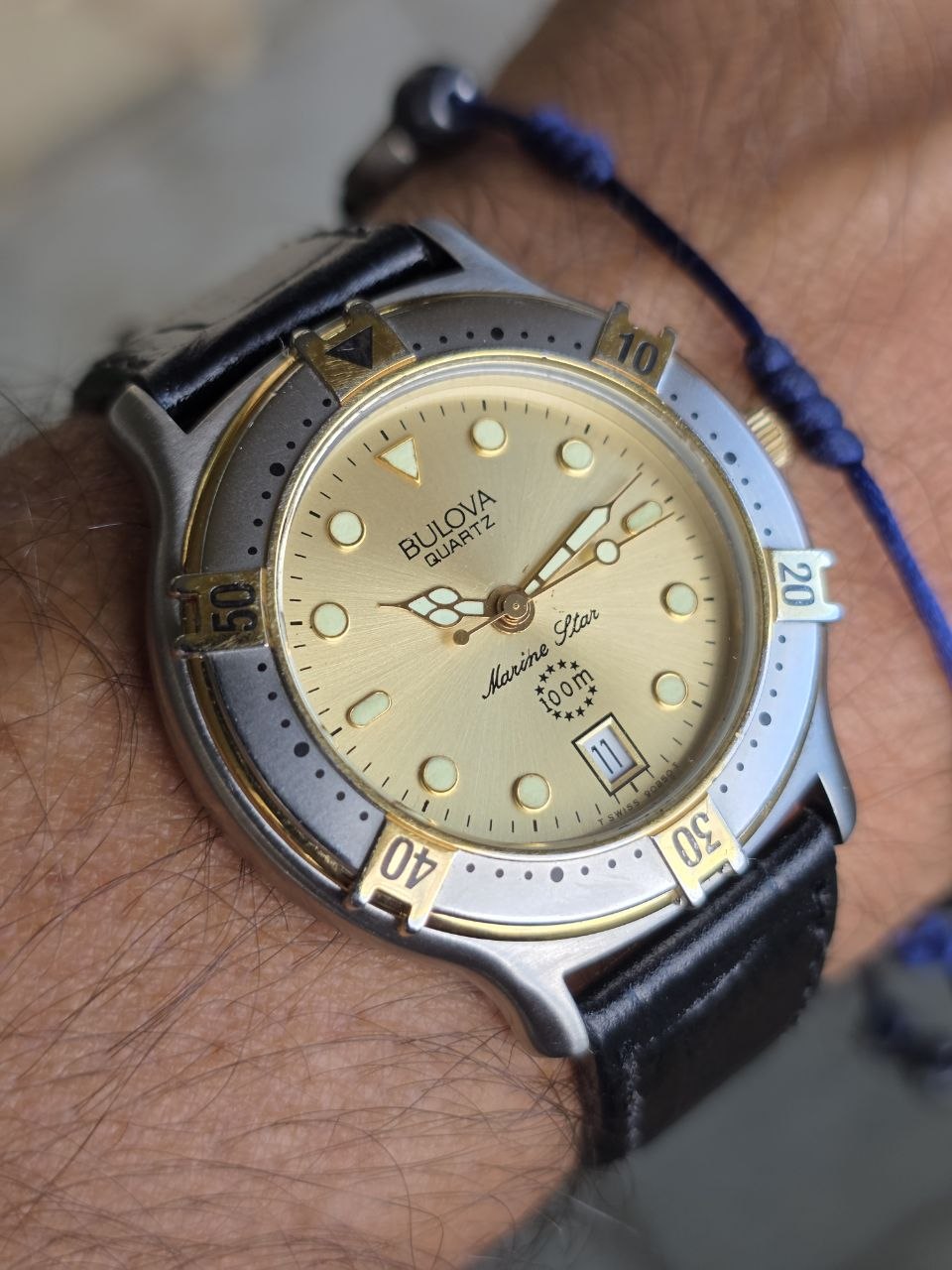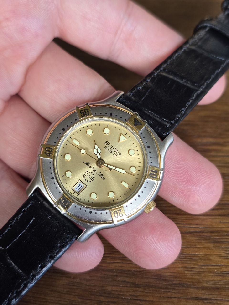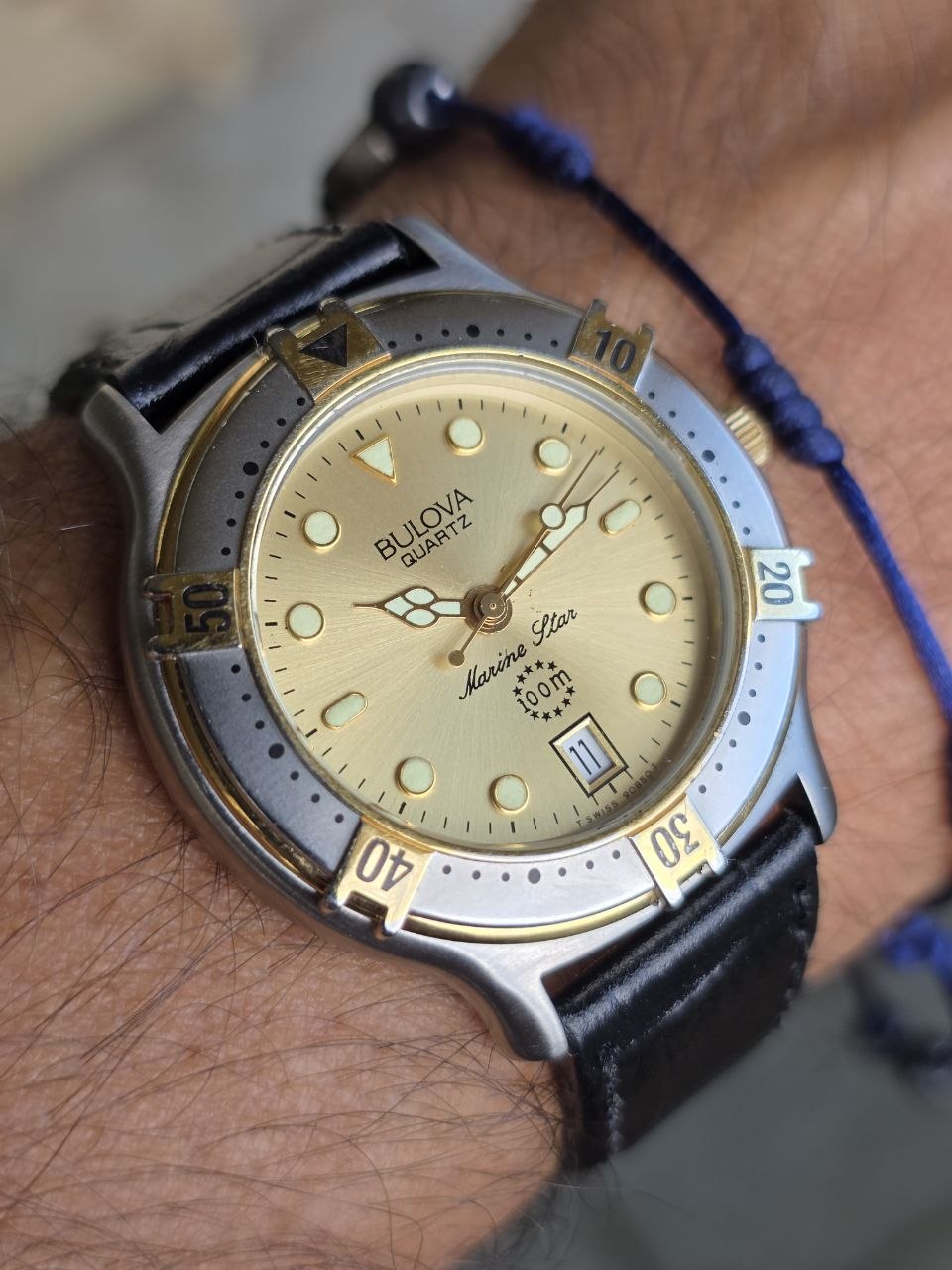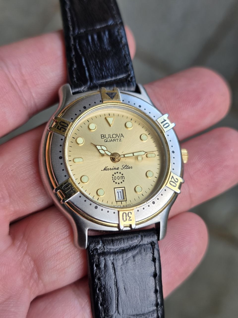 BULOVA MARINE STAR SWISS QUARTZ — PRODUÇÃO PROVÁVEL 1992 — PRIMEIRA GERAÇÃO DA LINHA SOCIAL — 100 METROS