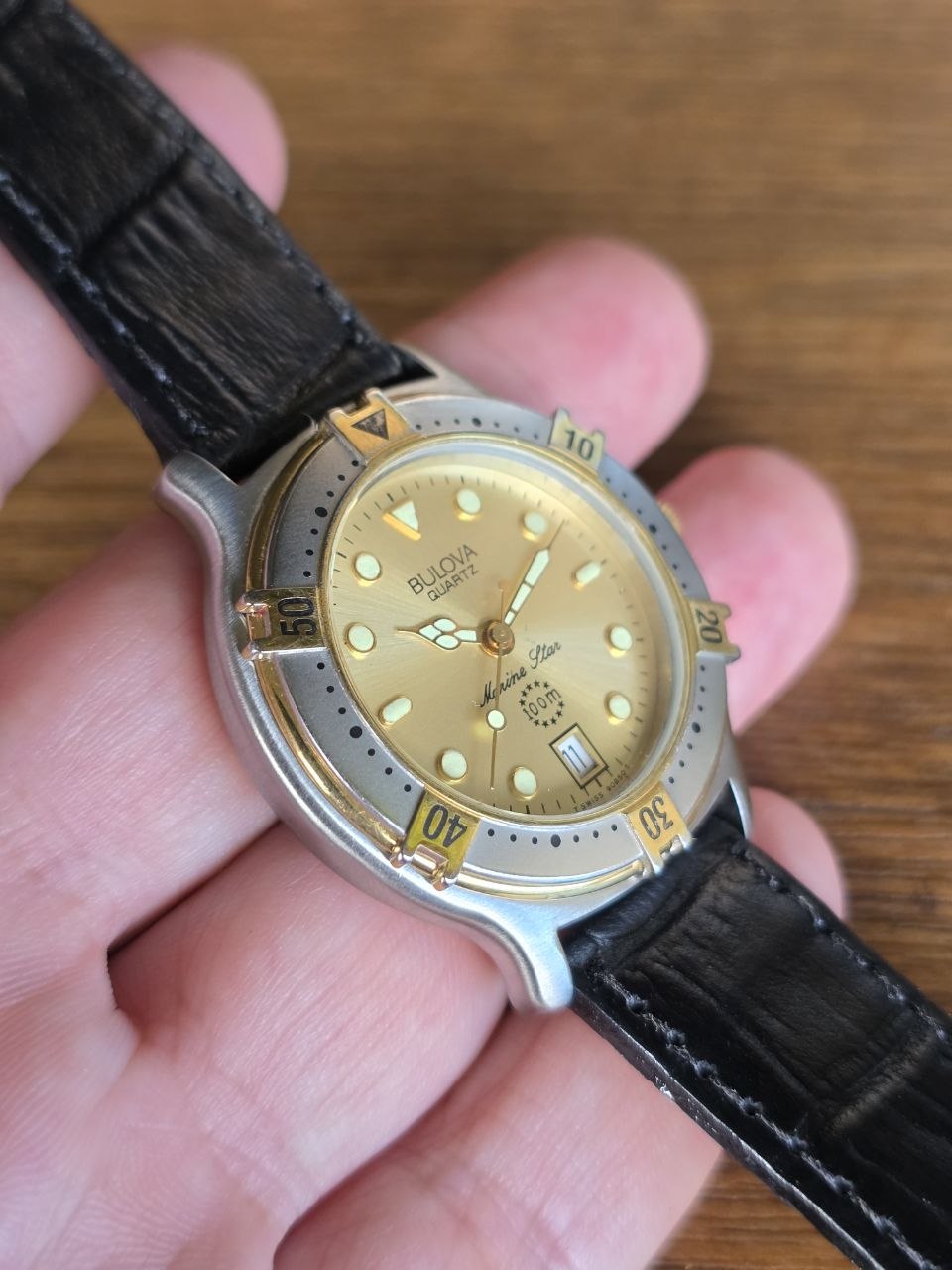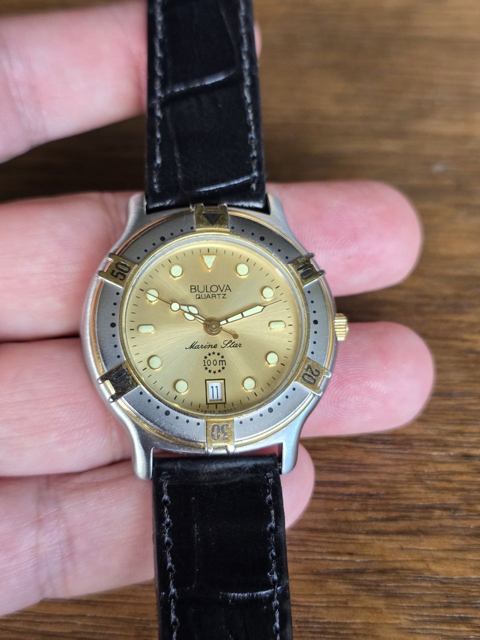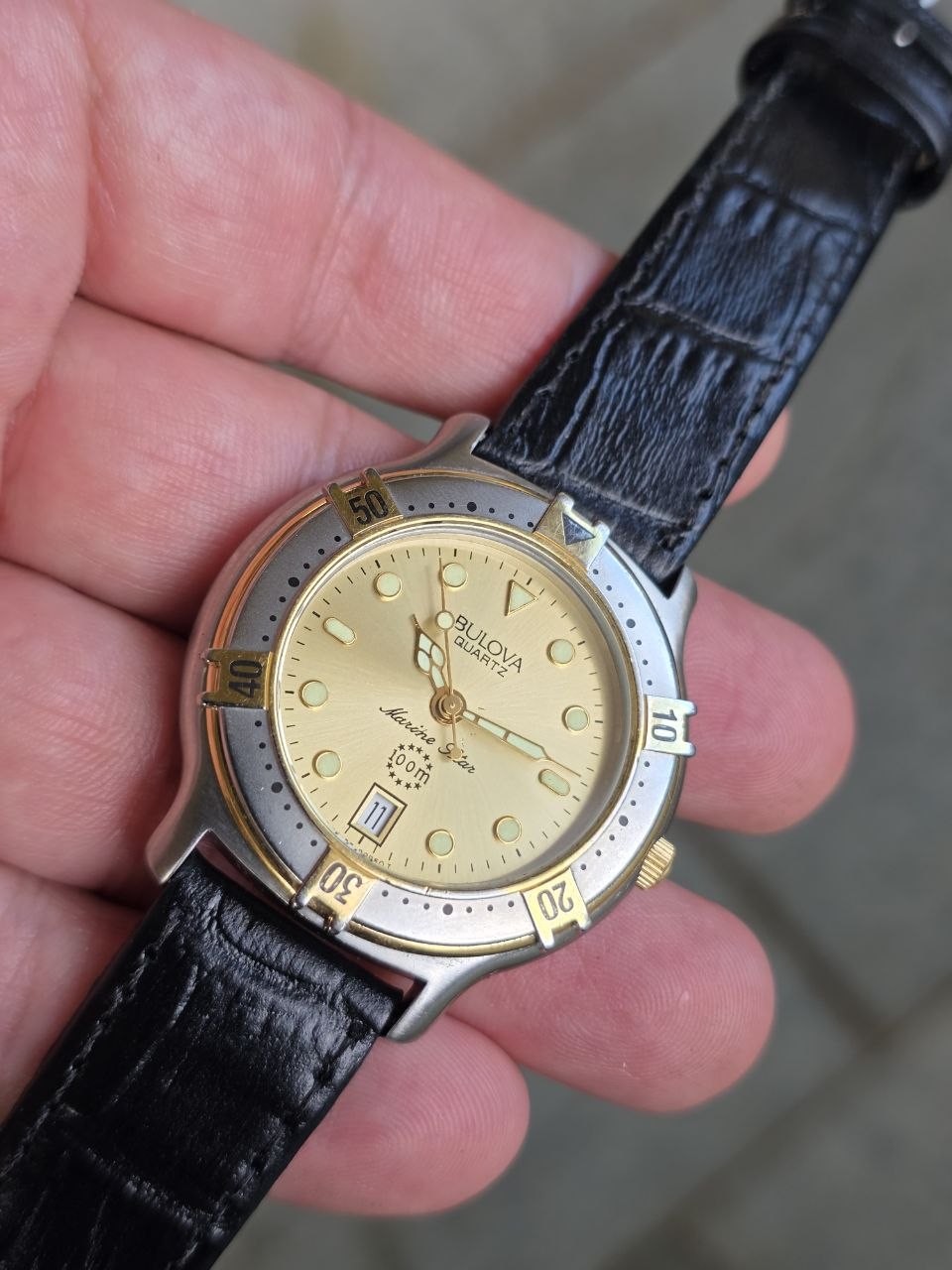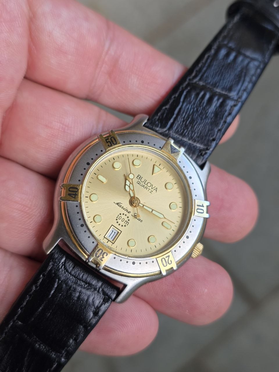 BULOVA MARINE STAR SWISS QUARTZ — PRODUÇÃO PROVÁVEL 1992 — PRIMEIRA GERAÇÃO DA LINHA SOCIAL — 100 METROS