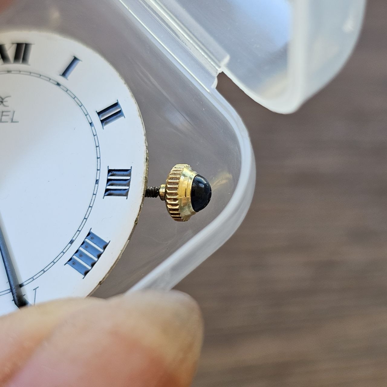 Acompanha o que aparece nas fotos: mostrador, movimento, ponteiros e coroa.