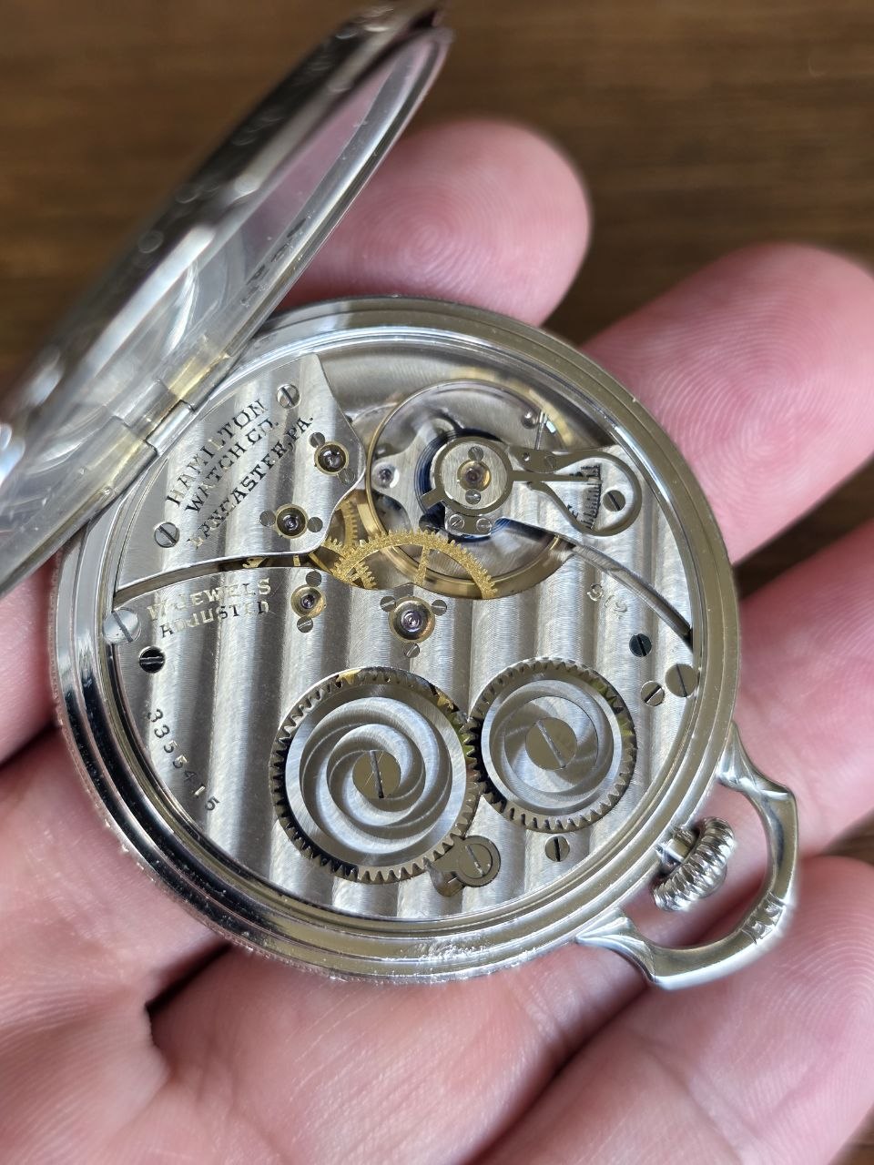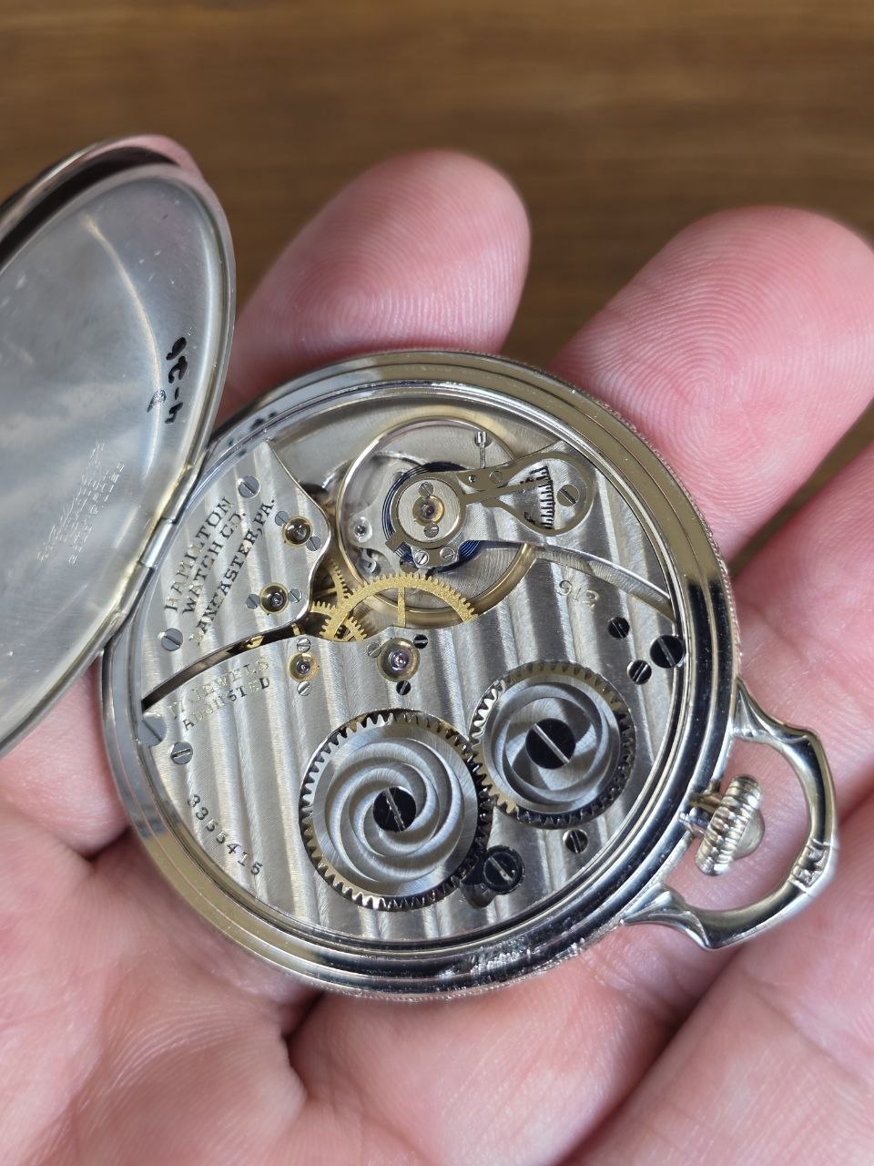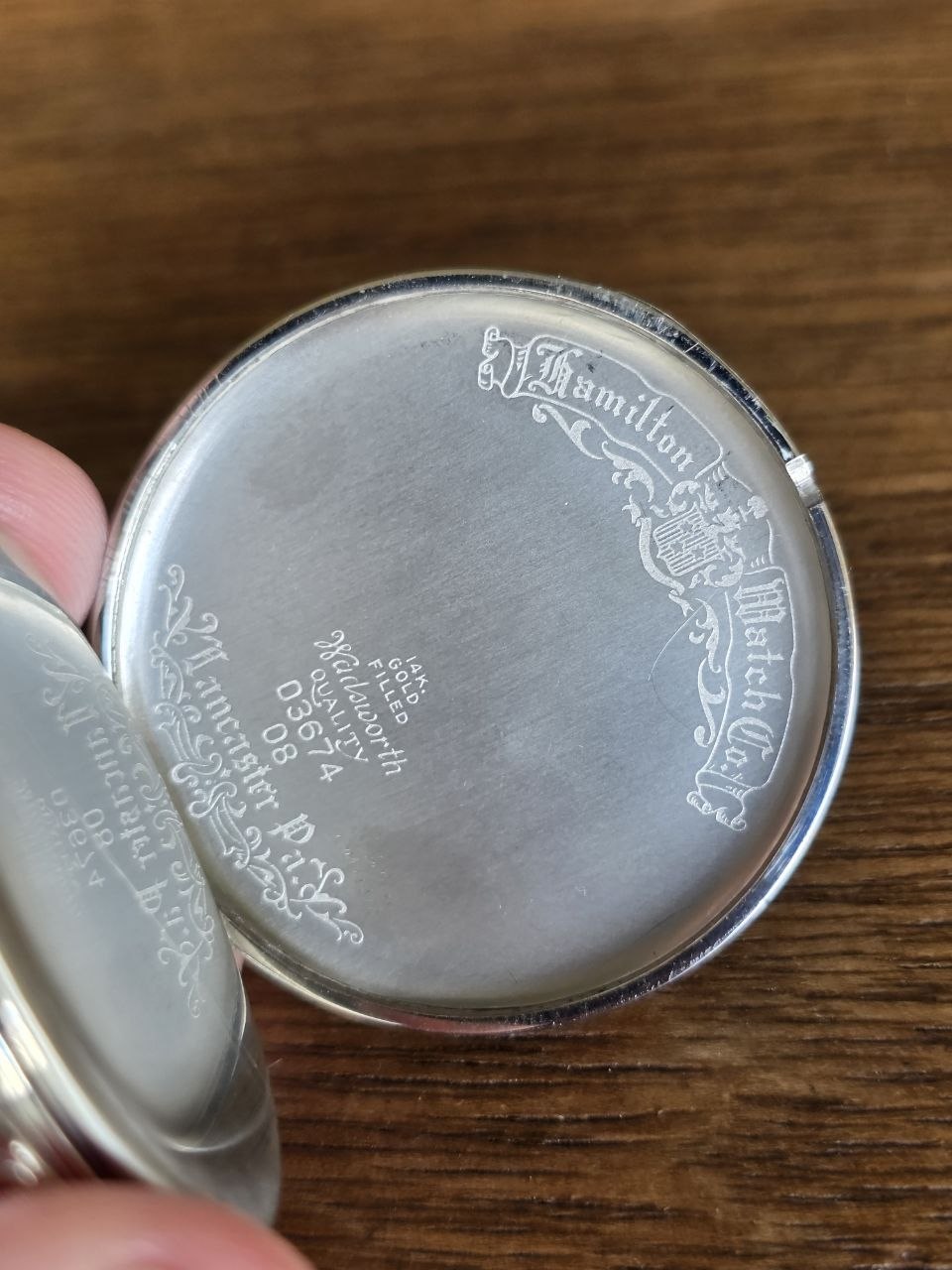 Hamilton 912 é um calibre muito respeitado entre os relógios de bolso americanos. Este exemplar reúne marca forte, movimento desejado, caixa Wadsworth gold filled, excelente apelo visual e conservação muito acima da média.
