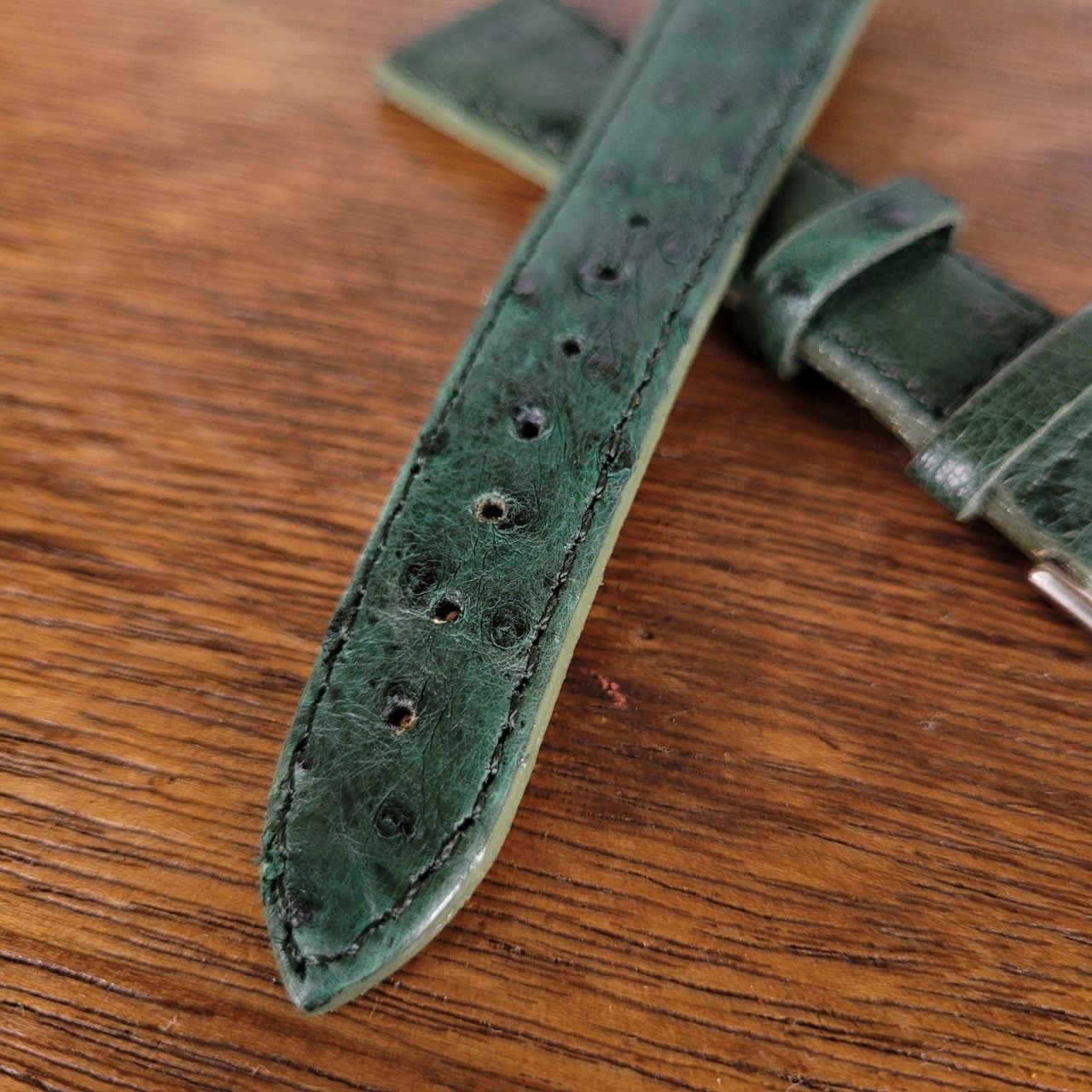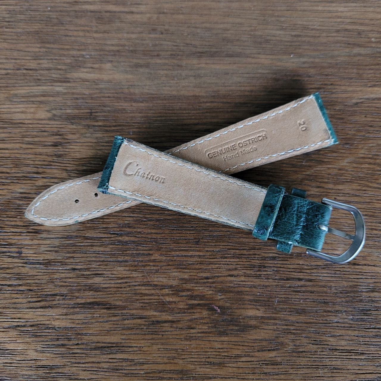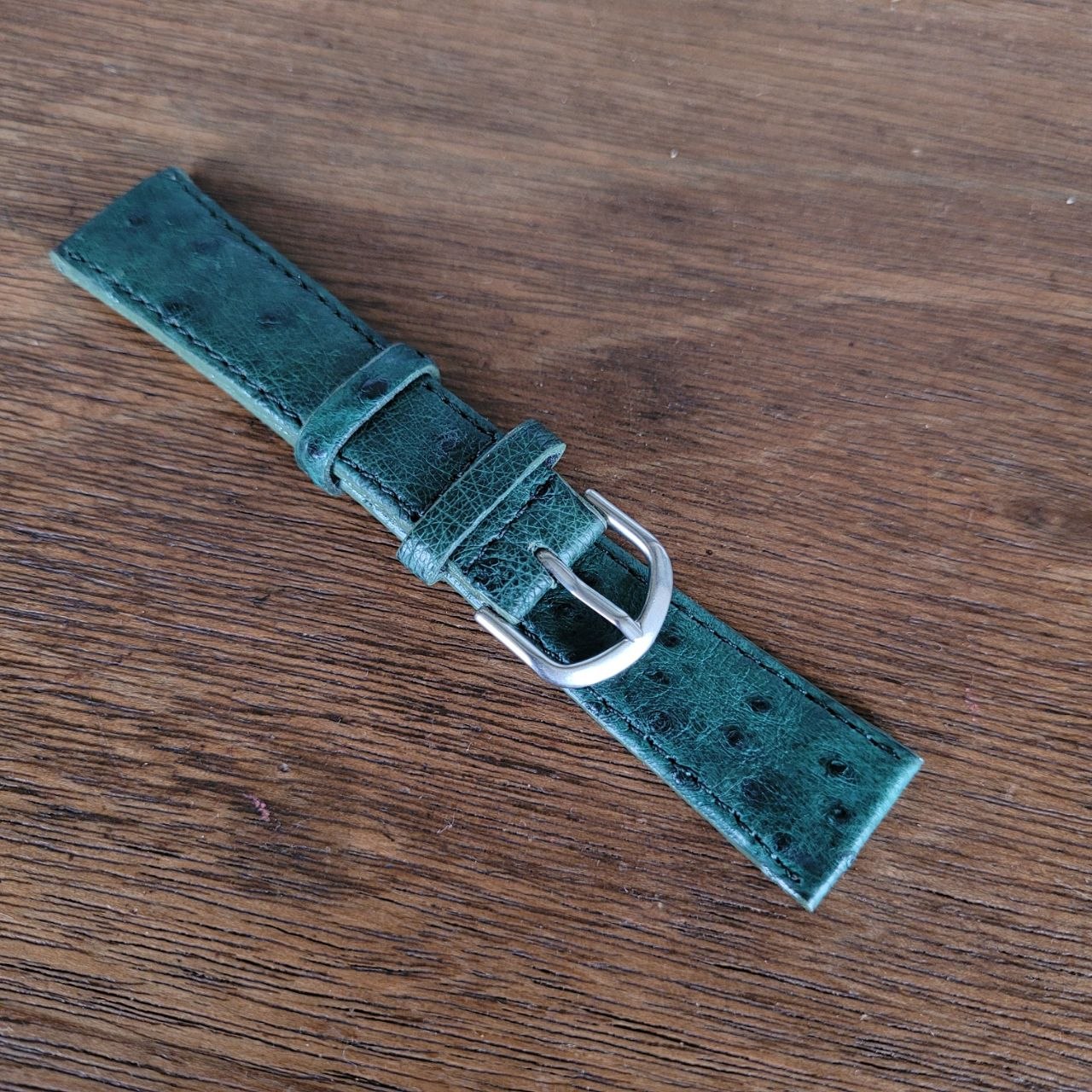 Descrição: Aprimore seu relógio com esta linda pulseira de couro de avestruz genuíno de 20 mm, feita à mão pela Chainon, uma das marcas brasileiras mais respeitadas em pulseiras de alta qualidade para relógios vintage e de coleção. Feita à mão com couro de avestruz genuíno, esta pulseira oferece uma textura refinada, um padrão natural distinto e o caráter premium que somente o couro exótico autêntico pode proporcionar. Cada peça reflete o trabalho manual cuidadoso e o artesanato tradicional, tornando cada pulseira especial e cheia de personalidade. A Chainon é amplamente reconhecida no Brasil por produzir algumas das melhores pulseiras para colecionadores e entusiastas de relógios vintage. Esta pulseira é uma excelente escolha para quem busca elegância, autenticidade, conforto e qualidade duradoura. Detalhes: Tamanho: 20 mm Material: Couro de avestruz genuíno feito à mão Cor: Verde escuro Marca: Chainon Ideal para relógios vintage e de coleção Aviso importante: Por favor, revise todas as fotos com atenção, pois são fotos reais do modelo. Garantia do vendedor: 3 meses