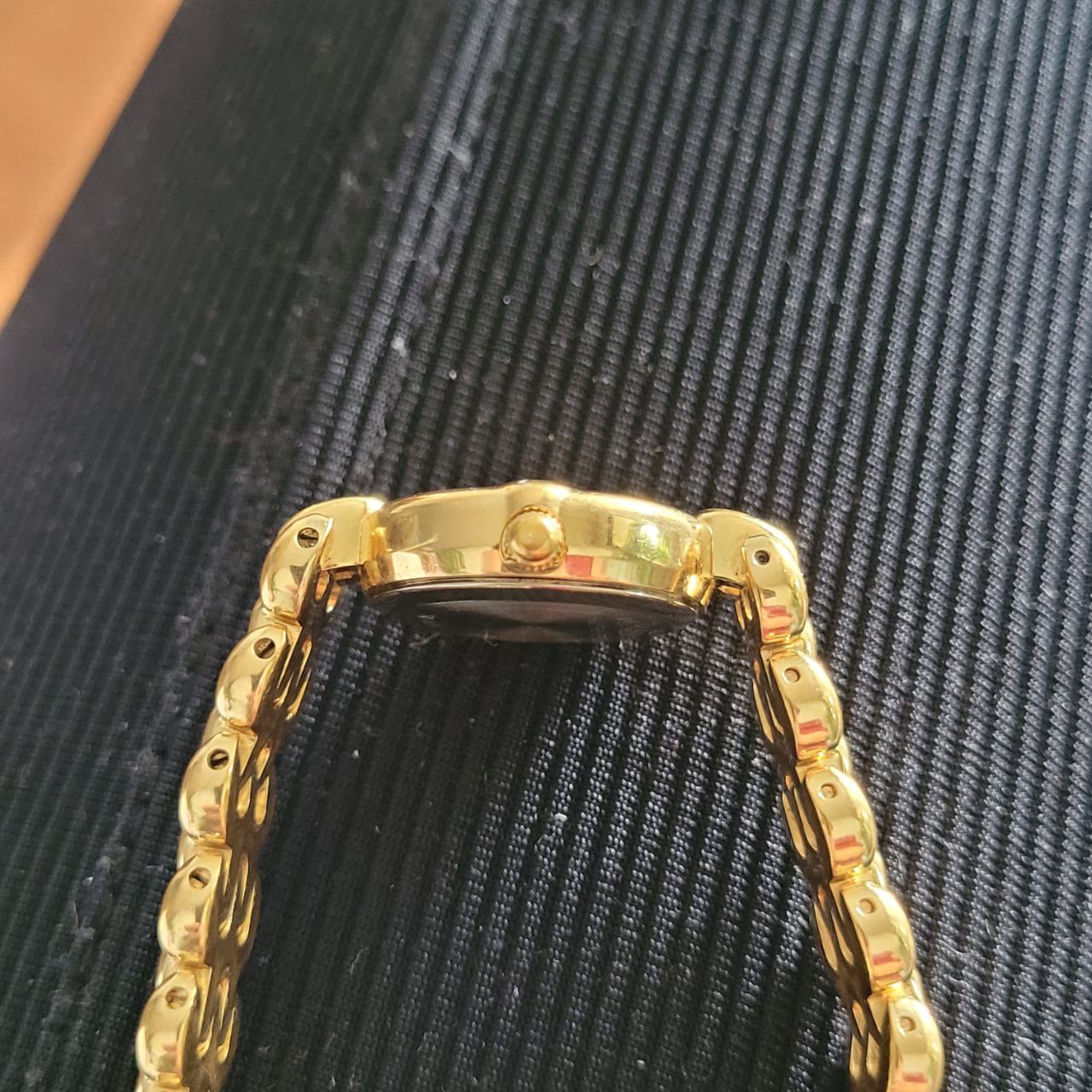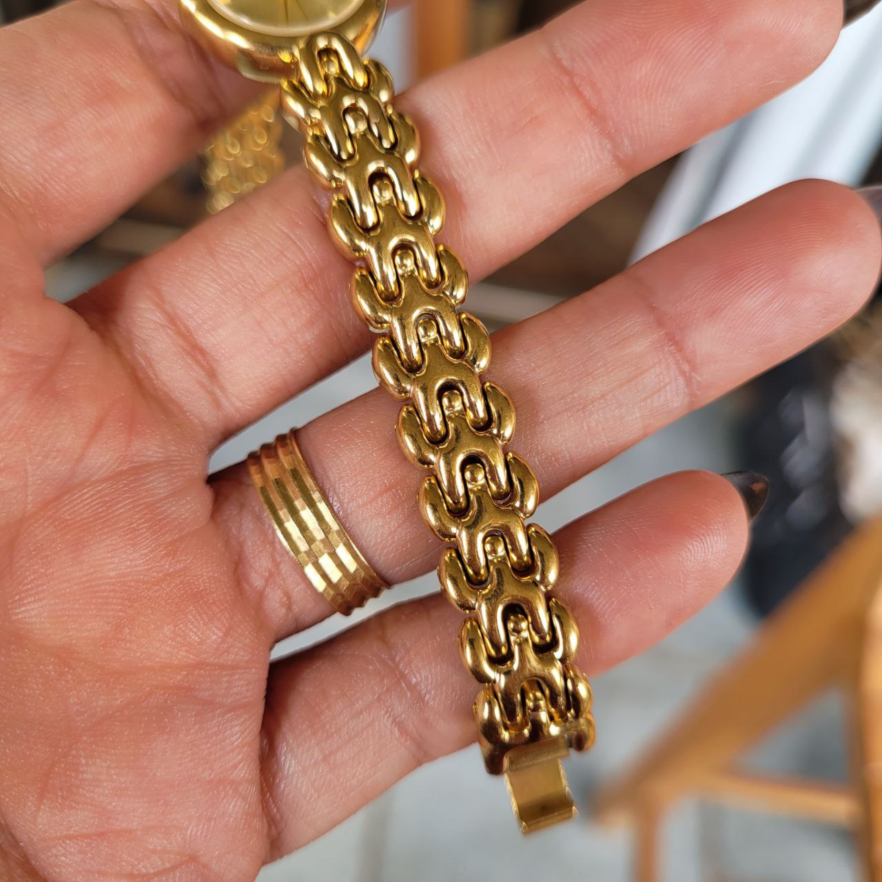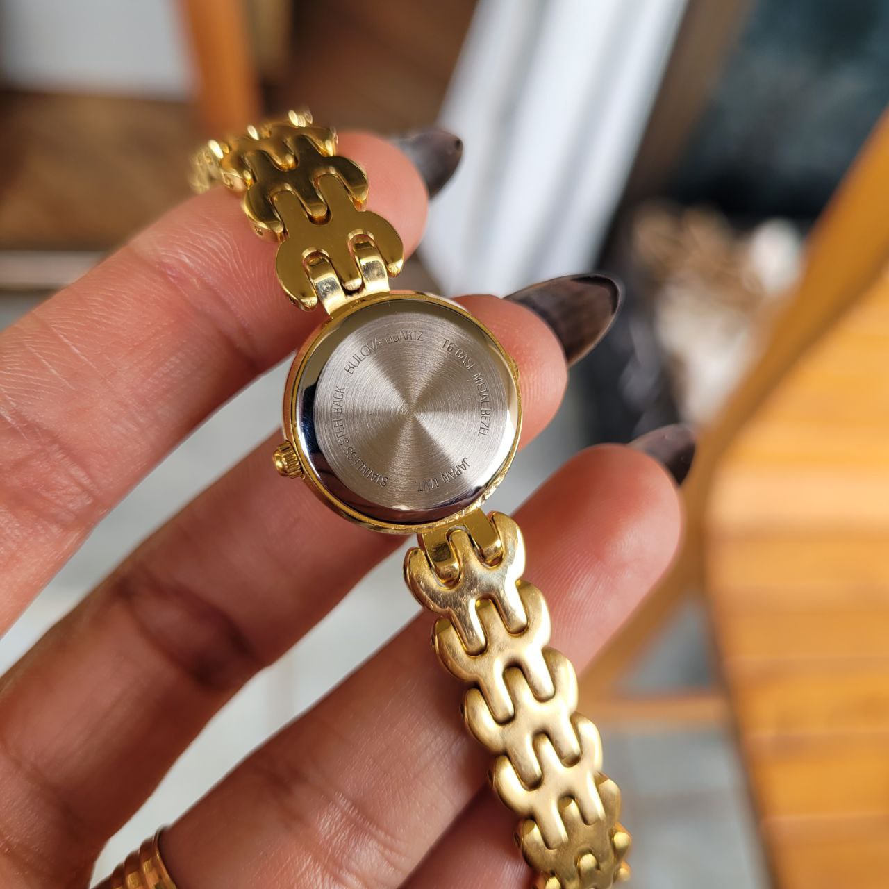 Movimento quartz Bulova, conhecido pela precisão e confiabilidade. Mostrador dourado com índices aplicados, caixa e pulseira em tom dourado, trazendo sofisticação e versatilidade para qualquer ocasião.