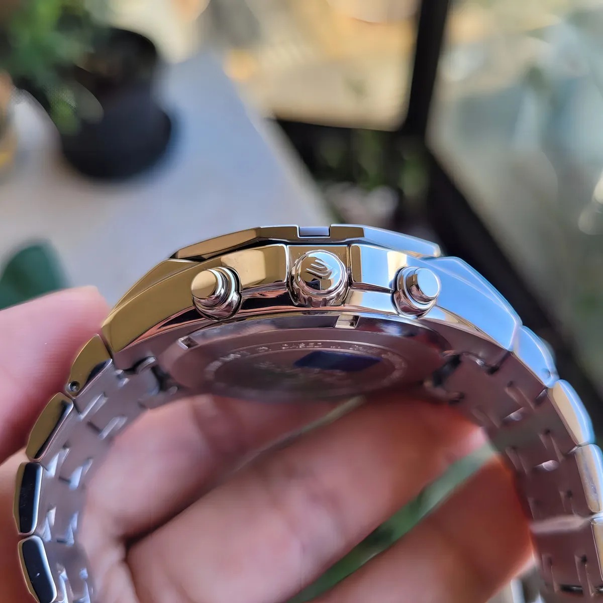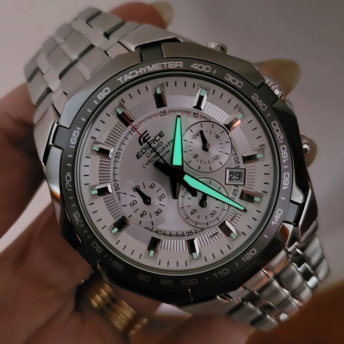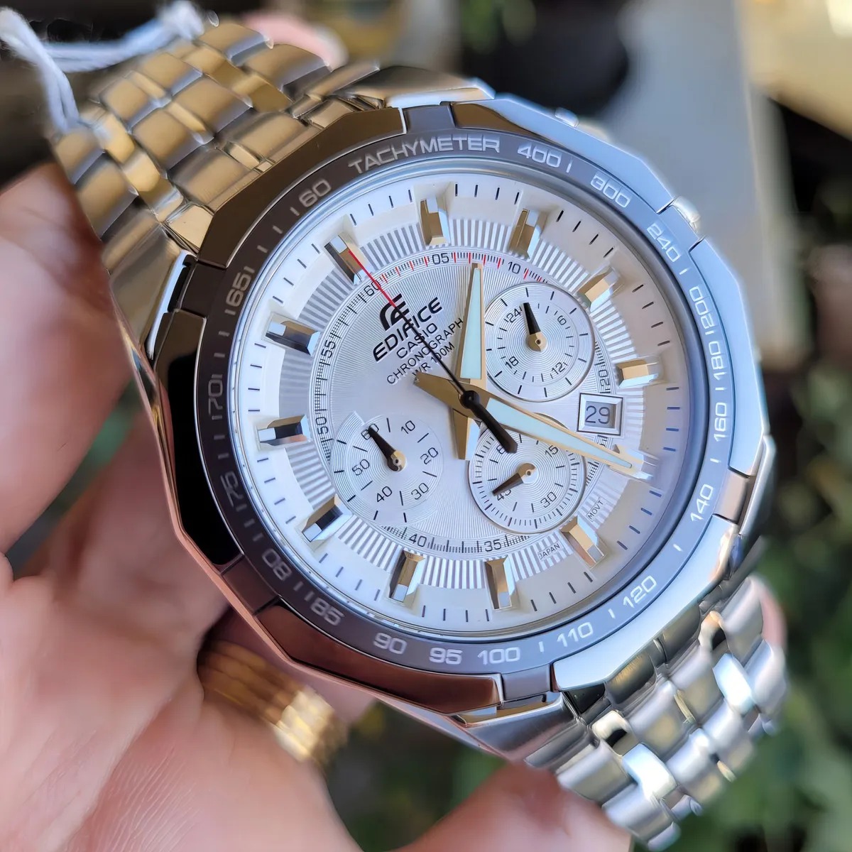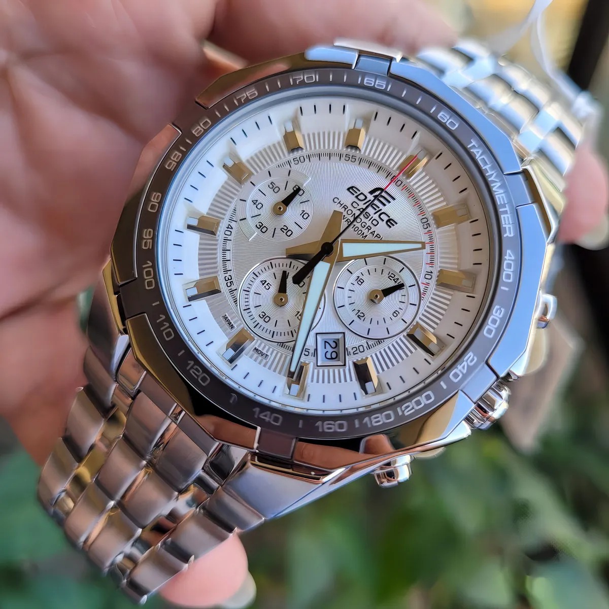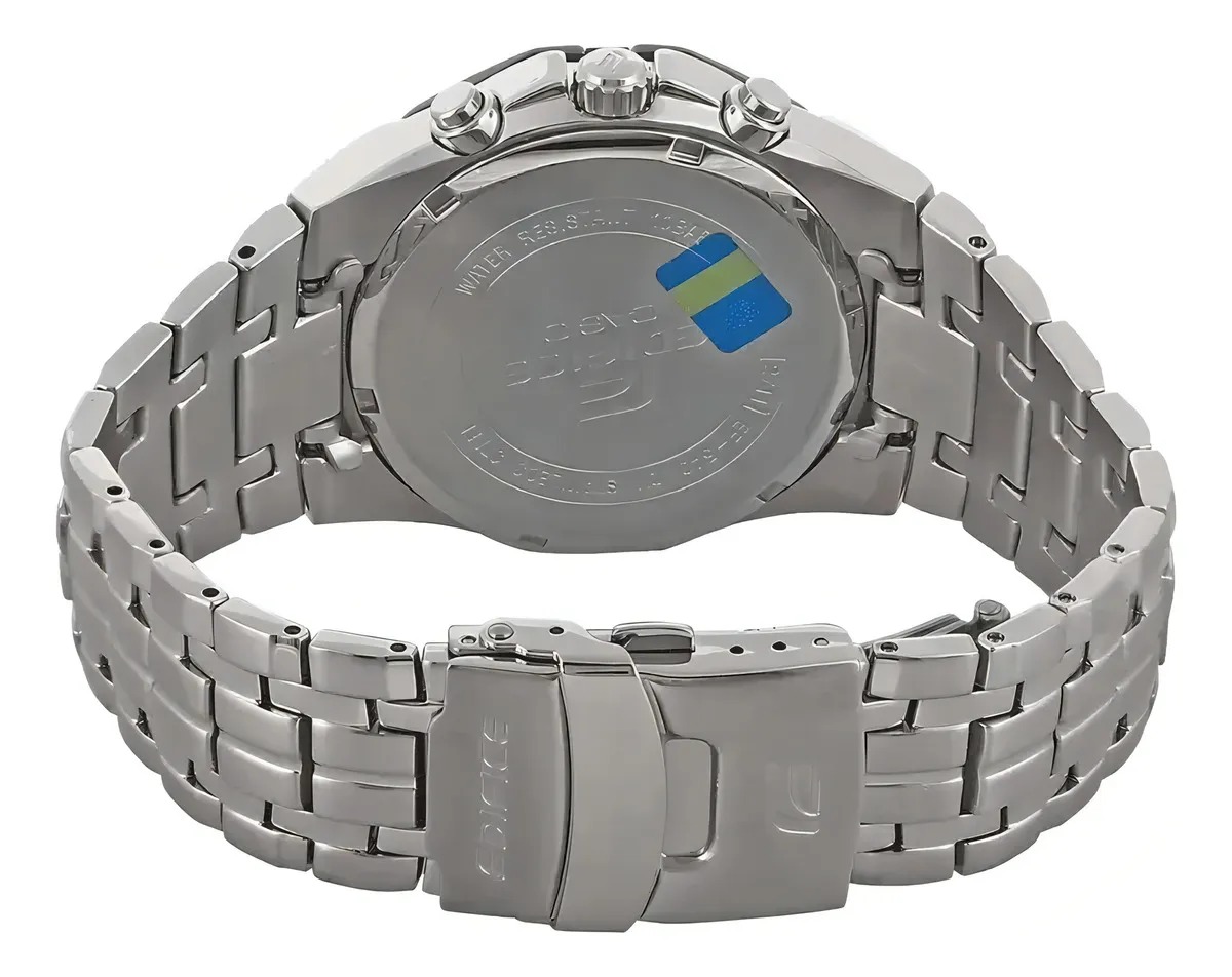 A Casio pensa e fabrica seus produtos sob uma premissa: “a invenção é a mãe da necessidade”. Com isto, surpreende seus clientes com relógios inovadores, que se destacam no mercado por sua tecnologia e utilidade. Marca: Casio Modelo: EF-540D-7AV Categoria: Masculino Coleção / Linha: Edifice Cronograph Tamanho: Grande Funções: - Analógico - Calendário dia do mês - Cronômetro progressivo com capacidade de medição até 29:59'' - 1/1 segundo - Modo de Medição do Cronômetro: Tempo transcorrido - Mostrador individual para o Formato 12/24 horas - Taquímetro: tabela de conversão de medidas Características: - Sistema de energia: Bateria - Coroa Rosqueada - Tampa posterior: Rosqueada - Resistência à água: 100m - Vidro: Cristal Mineral - Material da caixa: Aço Inox maciço - Material da pulseira: Aço Inox maciço Garantia do vendedor: 3 meses
