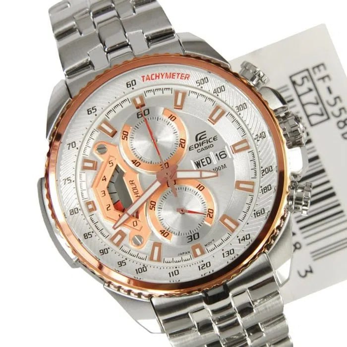 • O logotipo do EDIFICE estampado na coroa, na proteção do fundo e no fecho