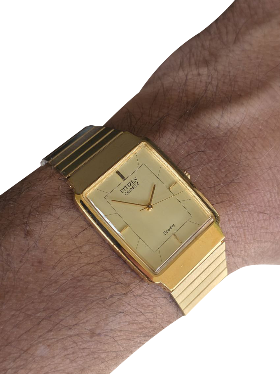 🌟 Relógio Citizen Seven Dourado 🔱 – Sofisticação Japonesa no Seu Pulso!
