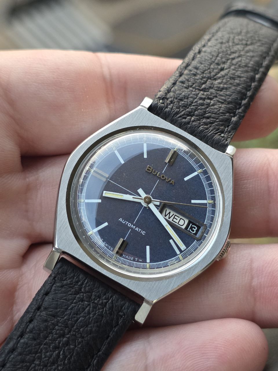 DESCRIÇÃO PARA LISTAGEM Antes de efetuar a compra, leia atentamente as observações. ATENÇÃO: PEÇA DE COLECIONADOR OBS 1: Modelo vintage de coleção particular; Totalmente revisado por relojoeiro profissional; Funcionamento 100%; Todos os detalhes da estética do relógio são visíveis nas fotos reais que estão no anúncio. OBS 2: Garantia de 3 meses no funcionamento do relógio; OBS 3: NÃO ACOMPANHA A CAIXA NEM OS MANUAIS DA EPOCA; É ENVIADO COM UM ESTOJO DE ZIPPER PRÓPRIO PARA RELÓGIO. BULOVA N3 AUTOMÁTICO SUÍÇO PRODUZIDO EM 1973 MEDE 35 MM DIÂMETRO SEM CONTAR A COROA POR 40MM DE GARRA A GARRA TAMANHO MEDIO ÚNICO A VENDA NO PAÍS . Garantia do vendedor: 3 meses