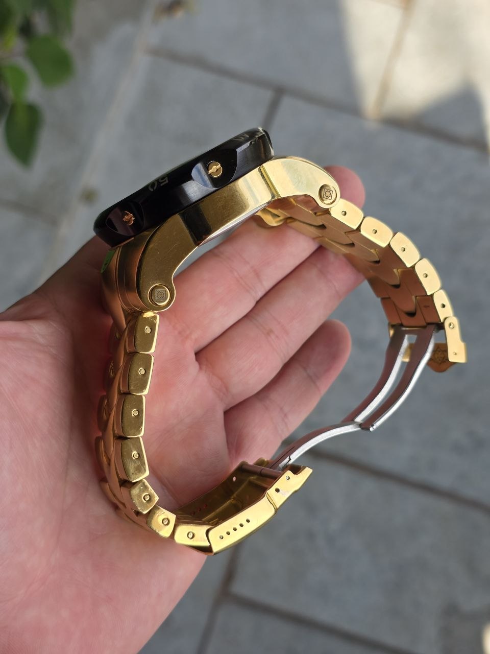 ATENÇÃO: PEÇA DE COLECIONADOR OBS 1: Modelo vintage de coleção particular; Totalmente revisado por relojoeiro profissional; Funcionamento 100%; Todos os detalhes da estética do relógio são visíveis nas fotos reais que estão no anúncio. OBS 2: Garantia de 3 meses no funcionamento do relógio; OBS 3: NÃO ACOMPANHA A CAIXA NEM OS MANUAIS DA ÉPOCA; É ENVIADO COM UM ESTOJO DE ZIPPER PRÓPRIO PARA RELÓGIO. Ano 2016 Coleção Venom Material da Pulseira Aço Inoxidável Tom da Pulseira Dourado Tamanho da Pulseira [mm] 26 Comprimento da Pulseira [mm] 210 Intercambiável Não Cor do Aro Preto Material do Aro Aço Inoxidável Tipo de Fecho Dobrável com trava de segurança Material da Caixa Aço Inoxidável Tom da Caixa Preto, Dourado Tamanho da Caixa [mm] 53,7 Tipo de Coroa Rosqueada Cristal Mineral Material do Mostrador Metal Cor do Mostrador Preto Tipo de Função Quartzo Função Cronógrafo 30 Minutos Gênero Masculino Material Luminescente Superluminova Cor Luminescente Branca Espessura da Caixa 20,6mm Código UPC 886678290451 Resistência à Água [m] 1000 Peso 420g
