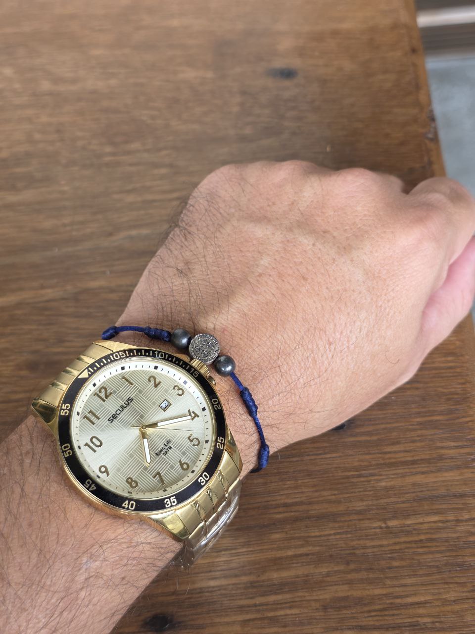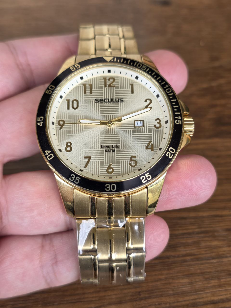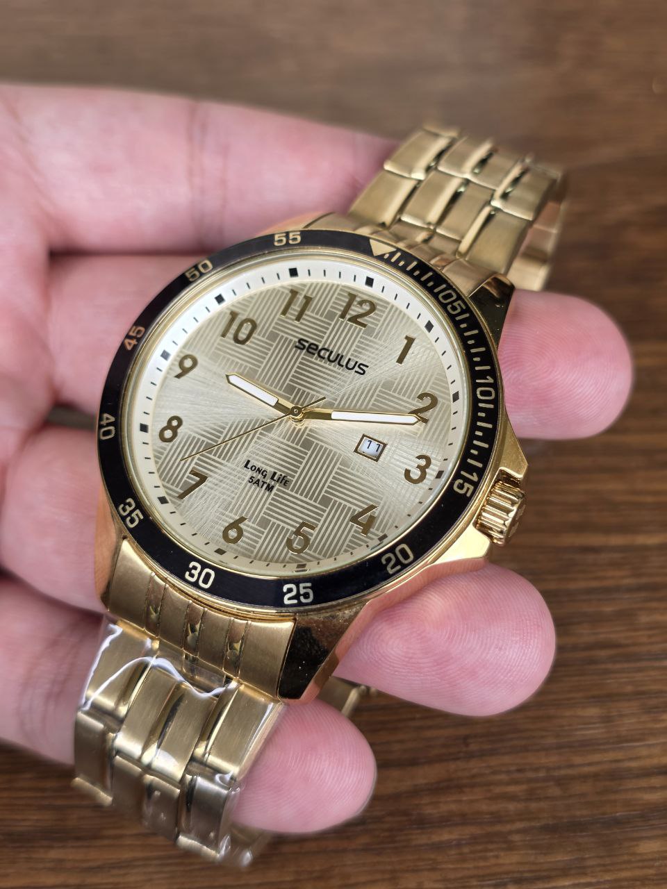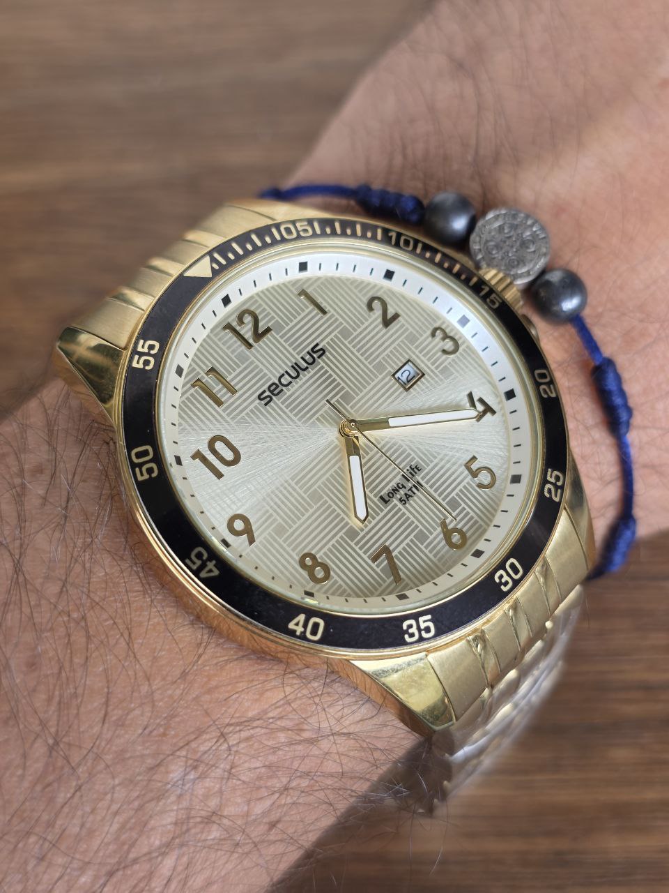 Marca: Seculus Série: Quartz Gênero: Masculino Movimento: Quartz Diâmetro da caixa: 49.6mm Altura da caixa: 10.8mm Material da Caixa: Aço Inoxidável Cor da Caixa: Dourado Cor do Mostrador: Dourado Calendário: Sim Tipo de Vidro: Mineral Tipo de Coroa: Pressão Resistência a água: 50m Material da Pulseira: Aço Inoxidável Largura da Pulseira: 22mm Tipo de Fecho: Dobrável Garantia do vendedor: 3 meses