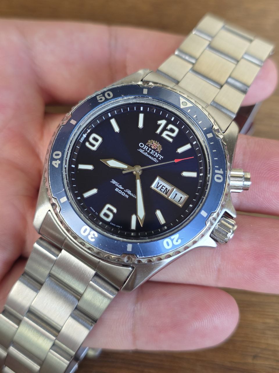 Relógio Orient Mako I — Primeira Geração, um dos divers automáticos mais clássicos e desejados da Orient. Modelo consagrado pela robustez, confiabilidade mecânica e excelente custo-benefício entre relógios de mergulho profissionais. Especificações técnicas: • Caixa em aço inox • Movimento automático Orient • Resistência à água: 200 metros • Coroa rosqueada e assinada, garantindo alto nível de vedação quando corretamente fechada • Botão de ajuste do calendário localizado acima da coroa também é rosqueado e deve permanecer travado para manter a resistência à água Dimensões: • 41 mm de largura sem contar a coroa • 45,5 mm contando com a coroa • 47 mm comprimento de garra a garra • 20 mm largura do encaixe da pulseira Pulseira original Orient em aço inox com fecho assinado. Condição: • Fotos reais em HD de todos os ângulos • Pequenos sinais de uso no aro • Demais partes com ótima estética • Funcionamento perfeito • Recém revisado por relojoeiro profissional Calendário com passe rápido funcionando perfeitamente. Importante: Não acompanha caixa nem manual da época. Excelente opção para quem busca um diver automático clássico, robusto e original Garantia do vendedor: 3 meses,