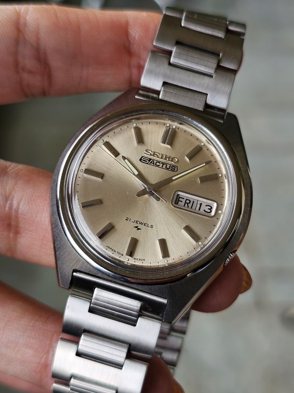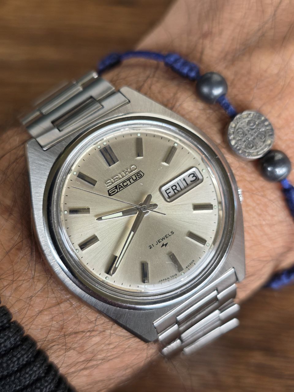 Relógio Seiko 5 Actus automático original, produzido no Japão na década de 1970. Este modelo faz parte de uma linha especial da Seiko destinada ao mercado japonês (JDM – Japan Domestic Market), conhecida por apresentar acabamento superior e design mais refinado dentro da família Seiko 5.