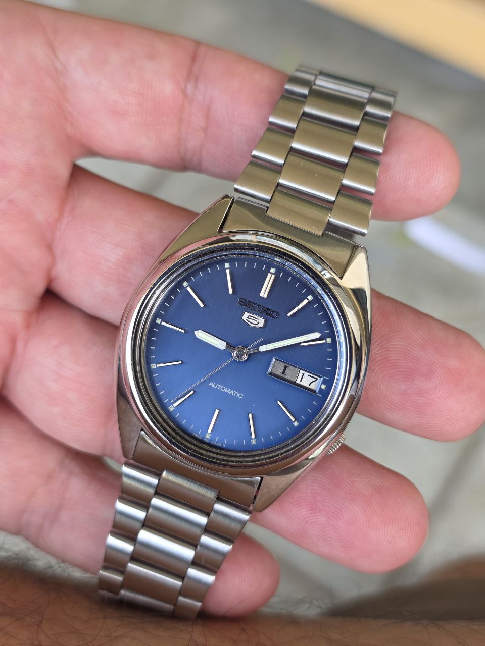 Relógio Seiko 5 Automático 7009-3040 1981 Vintage Clássico Azul Day-Date