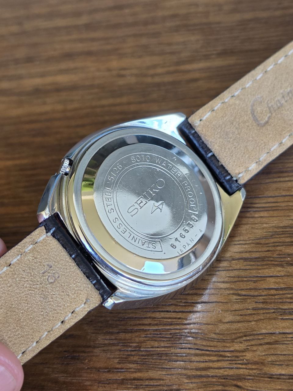 Seiko 5126-8010 automático original de fabricação japonesa, produzido aproximadamente em 1978, equipado com o consagrado calibre 5126A de 23 rubis.
