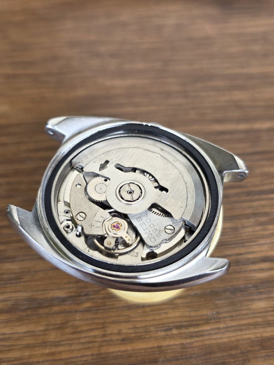 Equipado com o calibre automático Seiko 7005A, o relógio possui 17 rubis e é conhecido por sua robustez e durabilidade. Trata-se de um movimento confiável, sem corda manual, desenvolvido para uso diário com baixa necessidade de manutenção.
