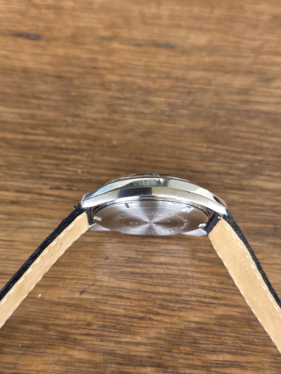 Relógio em bom estado geral, com sinais naturais do tempo compatíveis com a idade. Mostrador bem preservado, caixa com marcas leves de uso e movimento limpo.