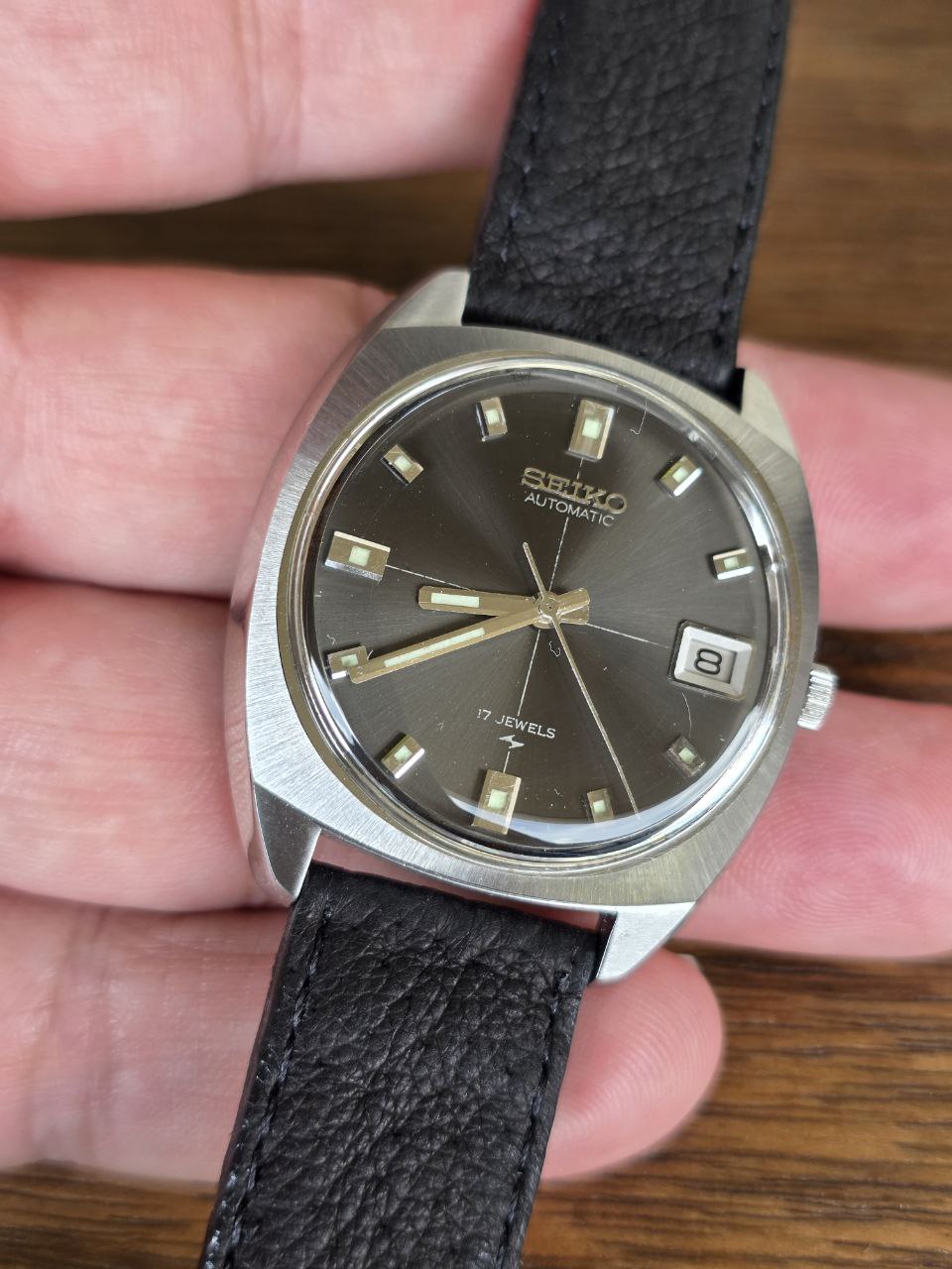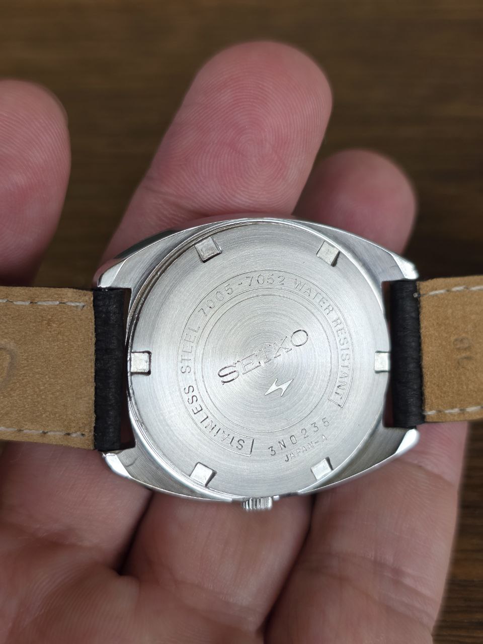 A linha equipada com o calibre 7005 foi desenvolvida pela Seiko para oferecer relógios automáticos confiáveis e acessíveis. Este modelo, com referência 7005-7052, traz o estilo característico dos anos 70, com caixa cushion e visual moderno para sua época.