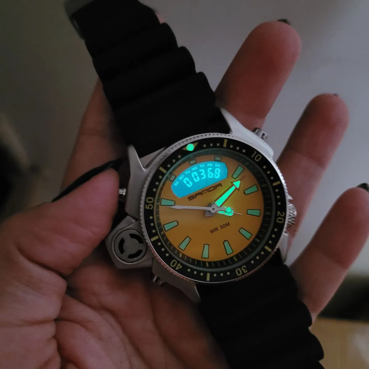 RELÓGIO MASCULINO ESPORTIVO SANDA ANALÓGICO DIGITAL PULSEIRA BORRACHA