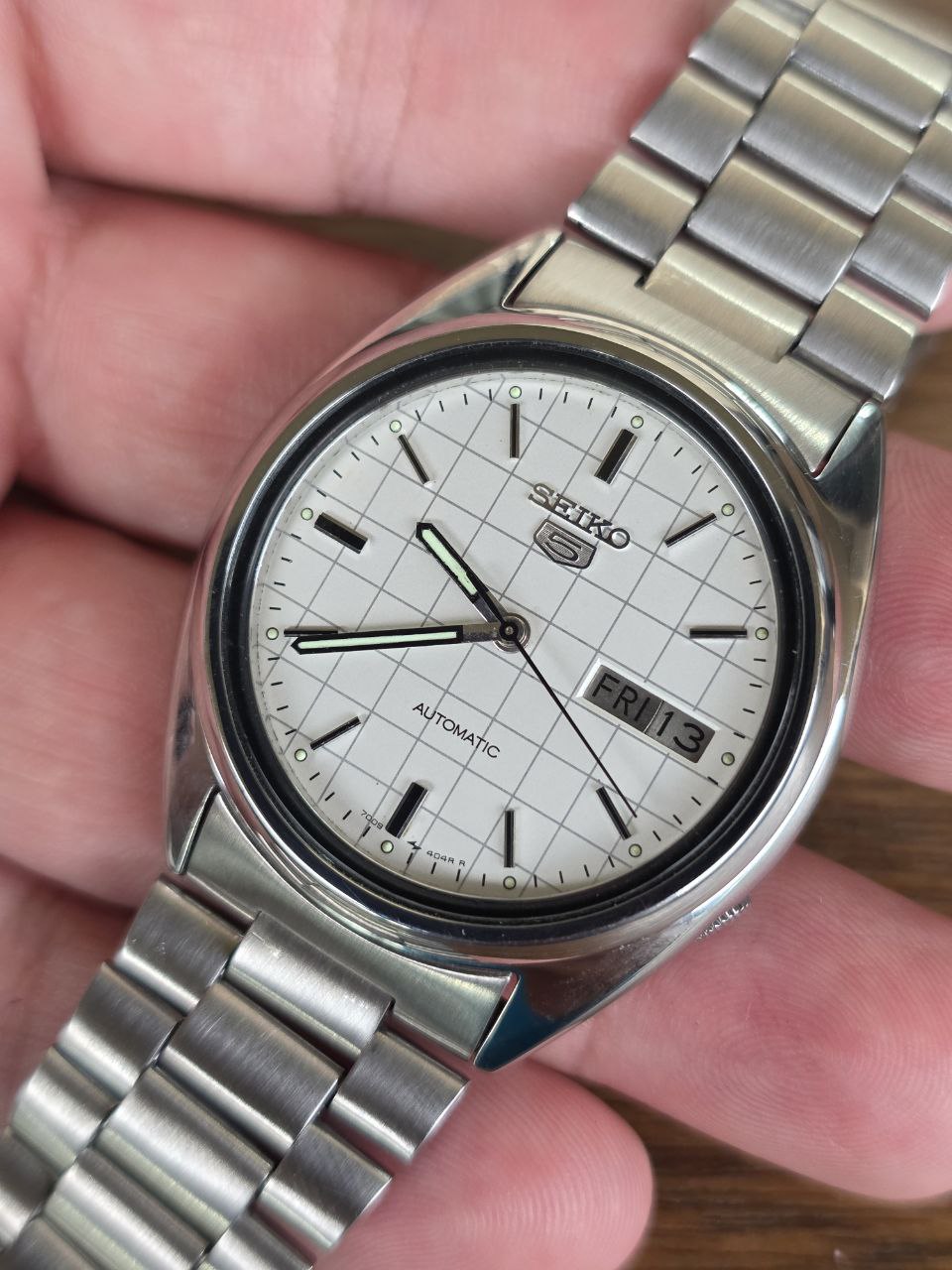 A linha Seiko 5 ocupa posição central na história da Seiko e da relojoaria mundial. Criada para oferecer relógios automáticos práticos, resistentes e confiáveis, tornou-se uma das coleções mais populares da marca. O exemplar com mostrador 7009-404R pertence à família de caixa 7009-4040, representando bem os Seiko 5 vintage de perfil versátil e uso diário, produzidos no período em que a Seiko consolidava sua reputação global.