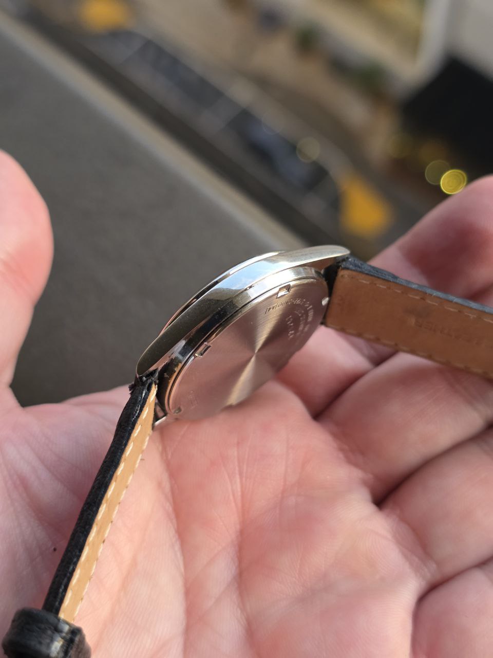 Pulseira nova em couro suino , recém colocada.
