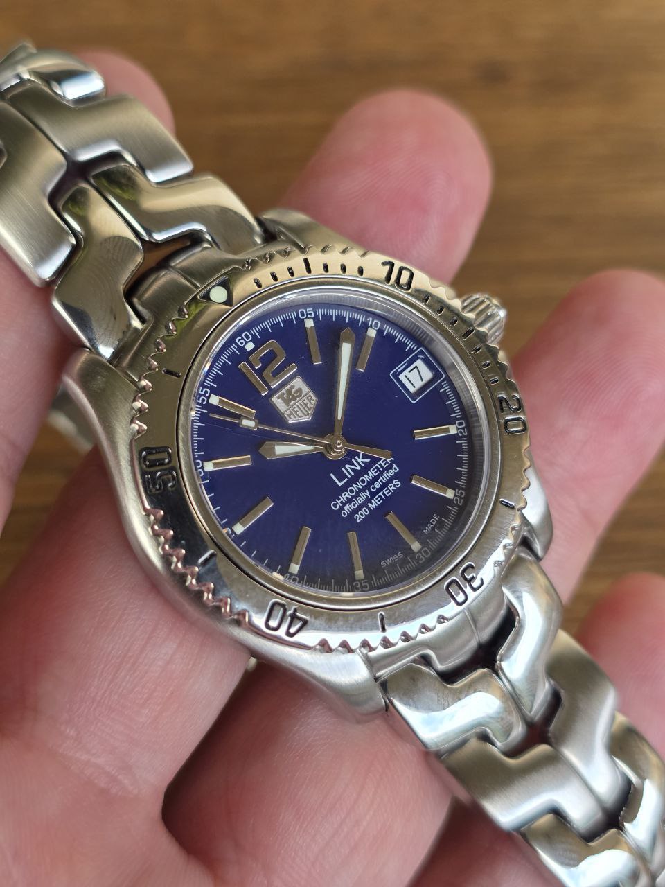 Relógio TAG Heuer Link Chronometer Automático, peça 100% original, de fabricação suíça, equipado com o renomado calibre ETA A2892-A2, movimento automático Chronometer, em excelente estado de funcionamento e recém-revisado por relojoeiro profissional.